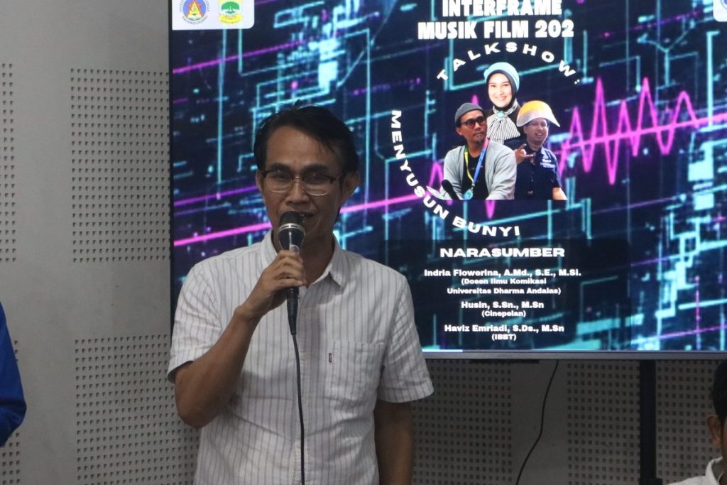Kegiatan dibuka pada Senin, 29 September 2025, di Ruang Perkusi ISI Padangpanjang oleh Dekan Fakultas Seni Pertunjukan, serta dihadiri oleh ketua jurusan beserta sejumlah dosen dari Jurusan Musik Film. Turut hadir bersama seluruh mahasiswa Jurusan Musik Film ISI Padangpanjang serta sejumlah mahasiswa dari Universitas Dharma Andalas. Rangkaian kegiatan diawali dengan sesi talk show, menghadirkan tiga narasumber ahli yang membagikan wawasan dari bidang komunikasi, seni media, dan kolaborasi multidisiplin. Indria Flowerina, A.Md., S.E., M.Si., selaku dosen sekaligus pemateri tamu dari Ilmu Komunikasi Universitas Dharma Andalas, menguraikan Model Komunikasi Harold D. Lasswell, menjelaskan proses komunikasi serta berbagai jenis iklan dari tradisional hingga digital serta bagaimana audiens menafsirkan dan memberi makna pada pesan yang diterima.